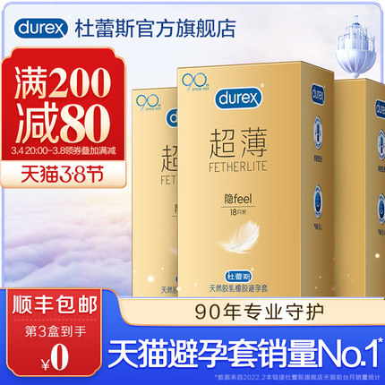 超薄金系列,隐形战衣如同裸入,就像没带T一样爽。目前金装16支套装天猫商城Durex杜蕾斯官方旗舰店促销价¥59.9,可领取¥25元优惠券,券后实付¥34.9元包邮,比线下便宜多了。
