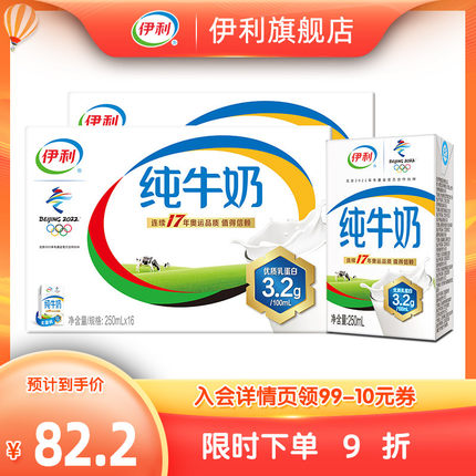 奥运直供,伊利 纯牛奶 250mlx16盒x2箱 (共32盒) 券后75.16元包邮