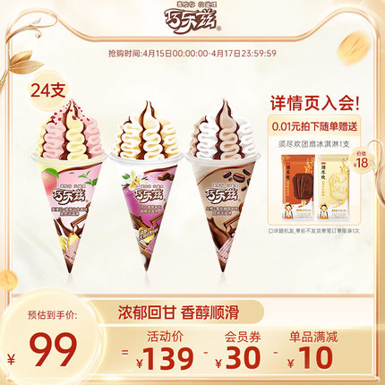 限地区,伊利 巧乐兹 脆皮大脆筒甜筒冰淇淋 3口味组合 85g*24支+须尽欢团扇冰淇淋1支 82.01元包邮
