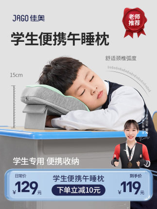 直降10元新低价!佳奥 学生可折叠午睡枕,可折叠设计易收纳,中空双凹护眼设计,超柔软记忆棉芯,舒适透气,高度可调节,趴睡,侧睡都可。目前天猫商城特价129元,叠加100元优惠券,实付新低29元包邮。