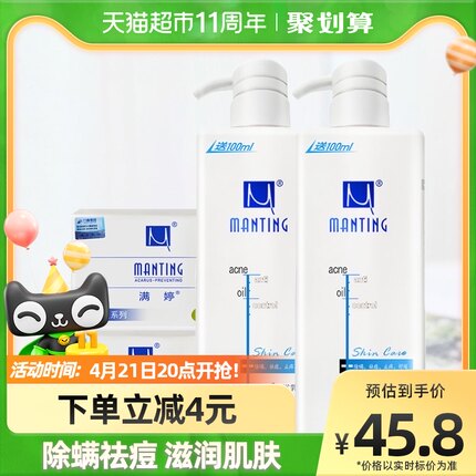 满婷 沐浴露 500ml*2瓶 +除螨香皂100g*2 满减+券后40.8元包邮 【天猫超市】