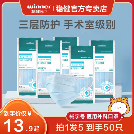 winner 稳健医疗 一次性医用外科口罩 100只 6.9元包邮