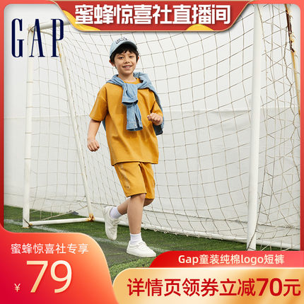 2022夏季新款,100%纯棉材质,装饰抽绳松紧腰,创意徽标印花。目前天猫商城gap官方旗舰店售价¥ 149,领取¥70优惠券,实付¥ 79包邮,110-160cm,4色码全,赠运费险