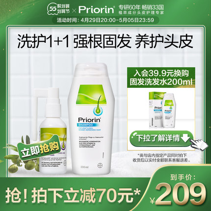 比单买便宜,Bayer 德国拜耳 Priorin 防脱生发洗发水200ml+生发精华喷雾 50ml新低98.87元包邮