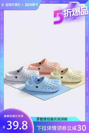 罗敷 2022新款 猫爪洞洞鞋 情侣款 多色 39.8元包邮