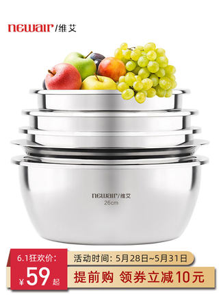 天猫newair维艾麦威专卖店69元,可领30元优惠券,实付29元到手,包含20cm、22cm、24cm、26cm实盆,加厚加深 多用途大容量 5件套装。另有多套装可选,有价差据需选择。