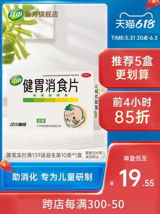 孩子不吃饭?饭前嚼一嚼,目前72片天猫商城江中药品旗舰店特价¥29.8,可领10元优惠券,实付¥19.8包邮,单品包邮好价。