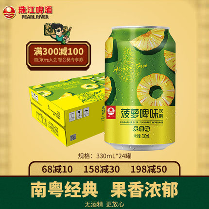 0酒精,珠江啤酒 菠萝啤味饮料330mL*24罐 39.8元包邮
