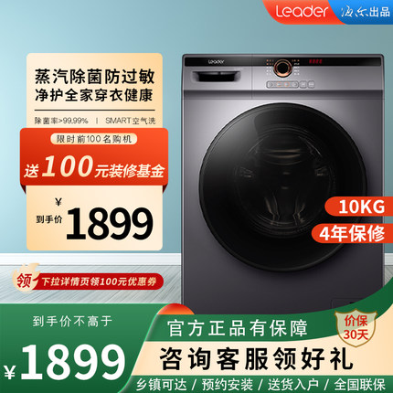 Leader 统帅 @G10HB22SE 洗烘一体机。60°C蒸汽深入纤维,透彻杀菌不伤衣,呵护敏感娇嫩肌肤。天猫商城目前售价2299元,领取150元优惠券,叠加店铺满减400元,到手价1749元。