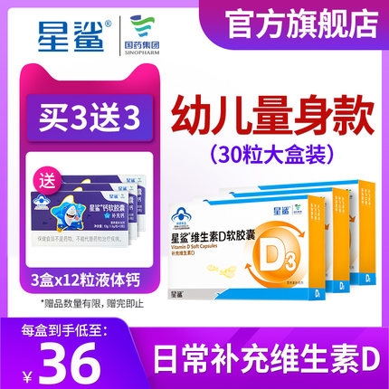 星鲨维生素d3软胶囊【3盒装+3盒钙共126粒】 券后63元包邮