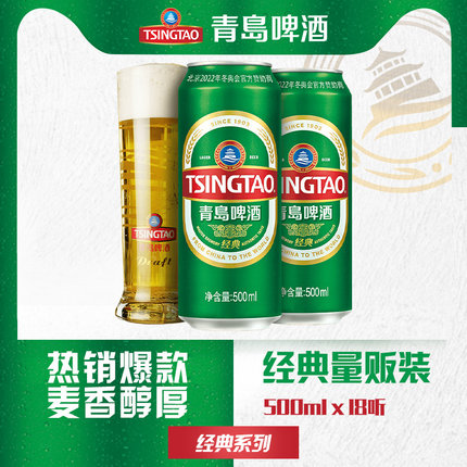 青岛啤酒 经典10度 罐装啤酒 500ml*18听 90元包邮