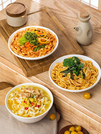 红油椒麻拌面、兰州拉面、葱油拌面、韩式火鸡面、酸辣金汤面、烧椒拌面6种口味任选,全进口小麦自然醒发,8小时手工日晒面饼,纯手工制面工艺,Q弹劲道,开水煮7-9分钟即可~