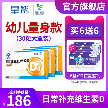 星鲨 维生素D滴剂软胶囊 30粒*6盒 孩子成长必备 126元包邮 送12粒*6盒 星鲨钙