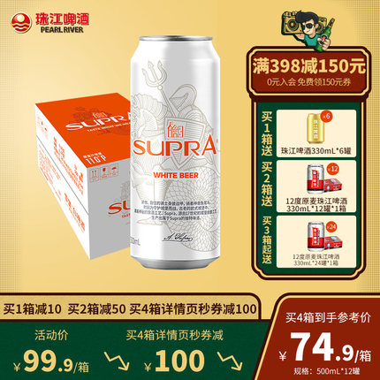 天猫珠江啤酒旗舰店99.9元,可领20元优惠券,实付79.9元到手,规格500ml*12罐,还赠12度原麦珠江啤酒330mL*12罐。