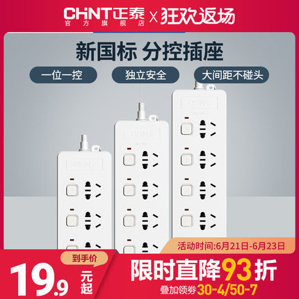 正泰,可是电气知名大品牌!这款插座插排,采用加粗线芯,高温阻燃,耐高温防触电, 大孔间距插头,儿童保护安全门,三年质保。多款可选。目前天猫商城特价21.9元起,下单93折,叠加7元优惠券,实付13.4元包邮。