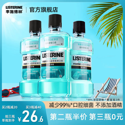 天猫listerine李施德林旗舰店,500ml款39.9元,可领10元优惠券,实付29.9元到手,规格500ml。口感温和 不添加酒精 拒绝尴尬口气问题。这款李施德林 冰蓝口味 漱口水,适用于早晚刷牙后,或者需要清洁口腔时使用;每次20ml,持续漱口30秒吐出即可;不要用水稀释,使用后,无需再用水漱口。