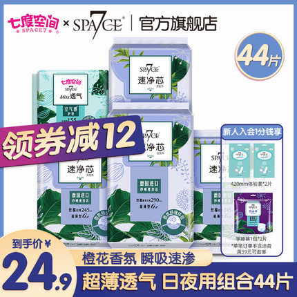 SPA7CE 七度空间 速净芯柔棉日用组合卫生巾5包44片 19.9元包邮