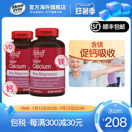 Schiff 旭福 高能液体VD钙+镁软胶囊 90粒*2瓶168元包邮包税(合84元/瓶)