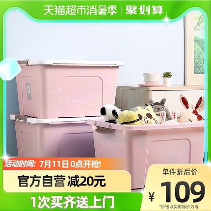 美丽雅 家用带轮塑料收纳箱 62L*3个+洁成手提垃圾袋90只新低74.03元包邮(收纳箱22.11元/个)