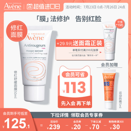 【买立减70元!】雅漾修红面膜,舒缓保湿~泛醇-润养修护!急救修护熬夜肌,熬夜星人的救世主