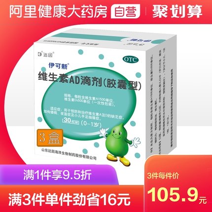 【¥101.4】【3盒】伊可新维生素AD滴剂30粒