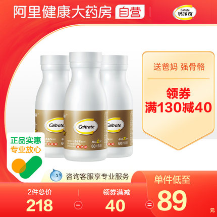 拍第一个选项,折26.3/瓶,有88vip+淘金币到手更低!每片含钙273.5mg,特别添加VD3和人体必需微量元素镁锌铜,可以促进骨质钙化吸收,每天2粒,科学配方,呵护骨骼,蓝帽认证。