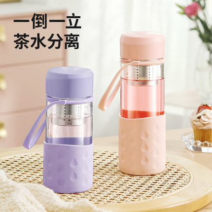 物生物 JV20220414 茶水分离玻璃杯 360mL 多色新低15.9元包邮