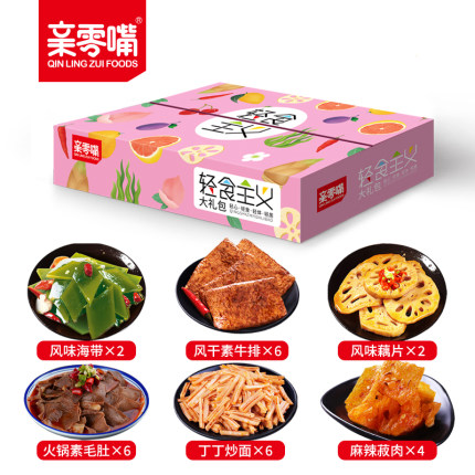 到手共52包,包含风味海带+风干素牛排+风味藕片+火锅素毛肚+丁丁炒面+麻辣菽肉6种零食,口感丰富,鲜辣爽脆,好吃没负担~