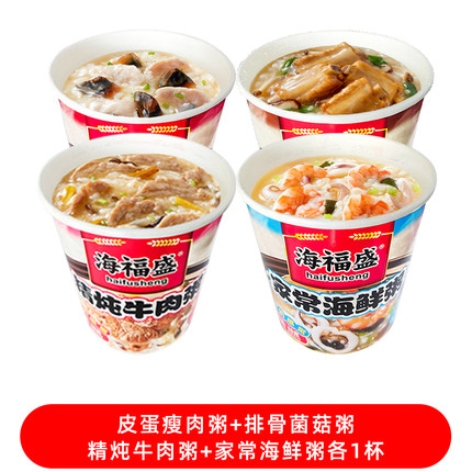 海福盛 排骨/海鲜/牛肉/皮蛋冲泡即食粥 38g*6杯 23.5元包邮