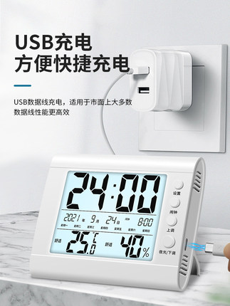自动夜光,可坐可悬挂。大屏幕,可以同时测量显示环境温度,湿度,有万年历功能,还能设置闹钟哦,实时测量家中湿度。