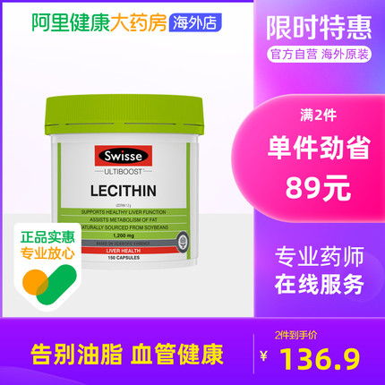 澳洲 Swisse 大豆卵磷脂胶囊 1200mg*150粒 保护肝脏促进脂肪代谢 90.9元包邮