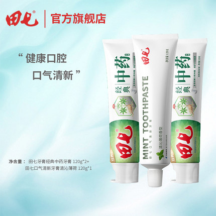 田七 口气清新牙膏 120g*3支 清火去黄去口臭 不含氟 16.9元包邮