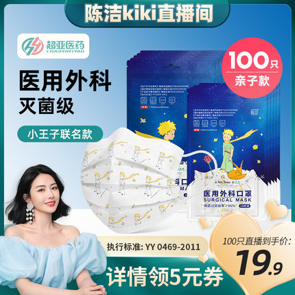 成人、儿童款、亲子款三个选项可选,折0.19/只,三层含熔喷布+环氧乙烷灭菌,细菌过滤效率≥95%,有药监局注册认证,出行做好防护。