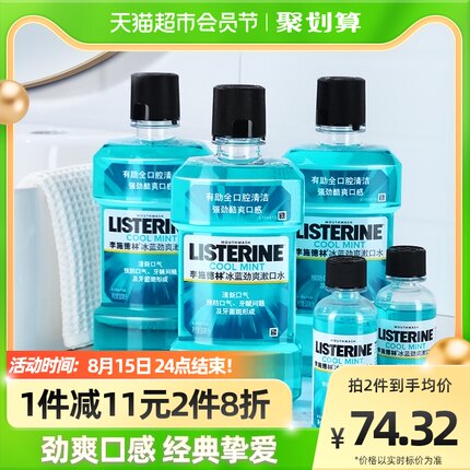 天猫超市 李施德林 冰蓝劲爽漱口水 500ml*3瓶+100ml*2瓶 减少牙菌斑 57.9元包邮
