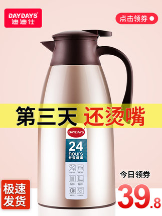 天猫daydays旗舰店,1.9L款59元,可领10元优惠券,实付49元到手,长效保温 三年质保 真空玻璃内胆。这款DAYDAYS 欧式真空保温水壶,四重锁温结构,从外到内,分别是不锈钢外壳→优质耐热玻璃层(夹层镀银)→真空隔热层(镀银真空技术)→优质耐热玻璃层,保温效果好。