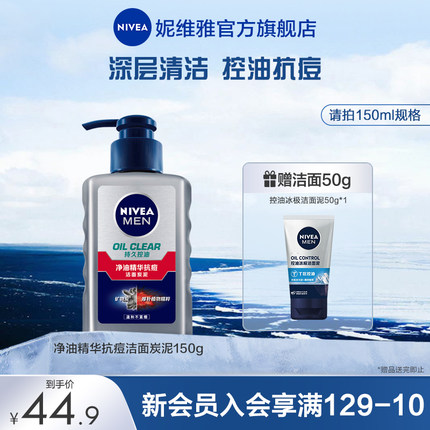 妮维雅 男士控油祛痘洗面奶 150ml 送洁面泥50g 24.9元包邮
