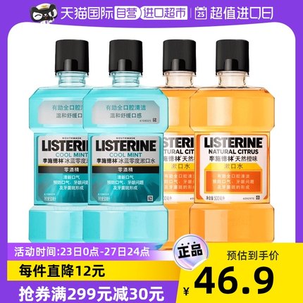 李施德林 漱口水 500ml*2瓶 3种口味任选 37.9元进口日价