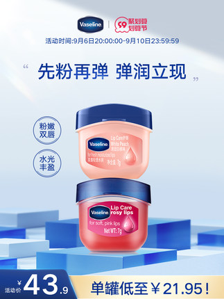 含招牌微凝晶冻成分,带有淡淡的玫瑰芬芳,快速润唇,为口红打底,特别滋润。目前天猫vaseline凡士林官方旗舰店特价¥43.9,可领¥5优惠券,实付¥38.9包邮,玫瑰、白桃组合可选。