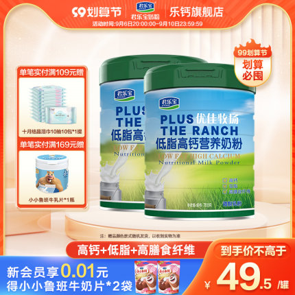 君乐宝 优佳牧场 低脂高钙牛奶粉 700g*2罐 99元划算价