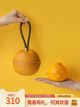 万仟堂丑橘子快客杯,便携式旅行水果茶具大吉大利C