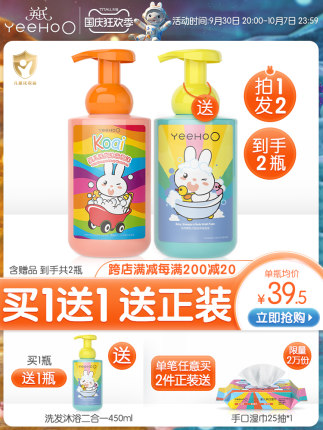【买1送1到手2瓶】英氏婴儿洗发沐浴泡沫450ml/瓶!严选安全成分,无刺激不添加~多重植萃,APG+氨基酸,深层清洁,洗发沐浴一瓶搞定,0月以上宝宝可用!宝妈们放心的选择!