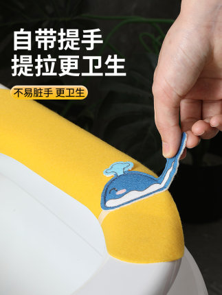 带提手设计的马桶垫,更卫生,可重复水洗粘贴,防臭抗菌!支持裁剪,适用于各类型马桶~