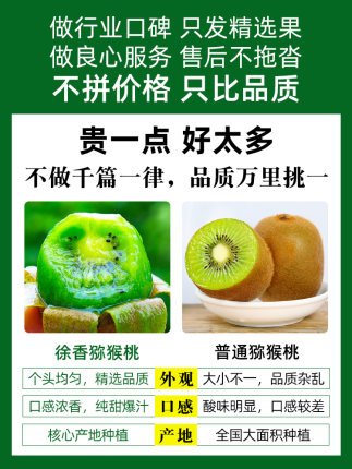 【正宗陕西】精品徐香猕猴桃【现摘现发】【精美彩箱】绿色种植,自然成熟,不催熟,不打农药,果形饱满,大小均匀,皮薄易剥,果肉细腻,入口无渣,香甜多汁,而且富含多种维生素,营养丰富,大人小孩都爱吃!