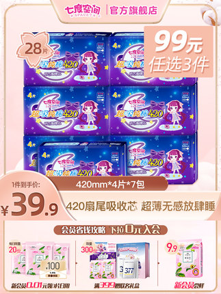 超特长夜用420mm,真芯扇尾不怕漏。目前天猫商城七度空间官方旗舰店售价39.9,领取9元优惠券,实付新低30.9元包邮,7包到手28片。