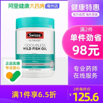 88VIP会员,Swisse 斯维诗 无腥味野生深海鱼油胶囊1000mg*400粒77元包邮包税