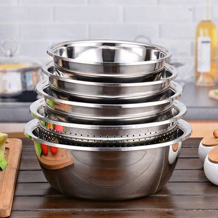 居家厨房必囤,多用途,大容量!维艾不锈钢盆!加厚宽边实用,光滑不伤手!还搭配漏盆,清洗蔬果更方便!当料理盆,餐具,还可当锅用呢!