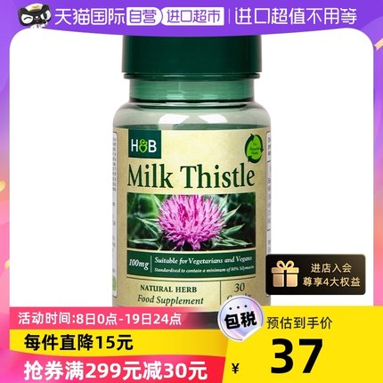 英国进口,解酒护肝~ Holland&Barrett荷柏瑞 天然奶蓟草营养胶囊 30粒 立减+券后32元包邮