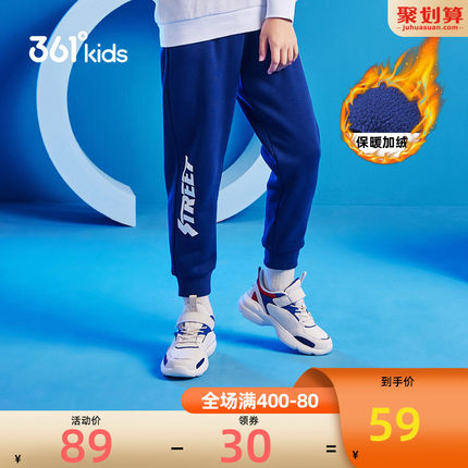 棉涤混纺面料,柔软亲肤,加绒内衬,舒适保暖,潮流撞色字母印花,科学剪裁,松紧适度,运动灵活无拘束,舒适服帖。目前天猫商城361度童装outlets店售价¥89,可叠加¥40优惠券,券后实付¥49包邮,多色不加绒/加绒同价可选,130cm-170cm码有货。