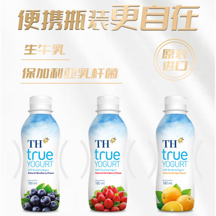 越南进口,TH 50%鲜牛奶发酵型水果味酸奶含乳饮料180ml*12瓶59.9元包邮