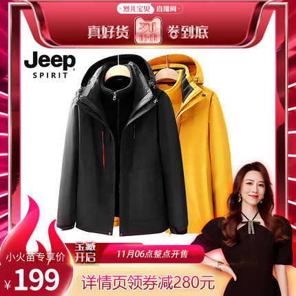 Jeep Spirit 三合一可拆卸内胆冬季保暖防寒冲锋衣外套 男女多色199元包邮